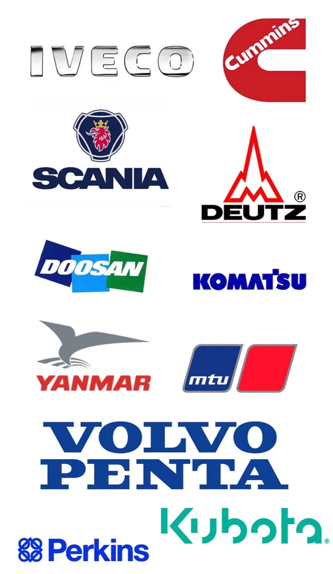 KUBOTA, STAMFORD, EHERGO, CUMMINS, KOMATSU, GESAN, IVECO, ISUZU, KOHLER, PERKINS, DENYO, DOOSAN, CAT, GMGen, YANMAR, HITACHI, MAN, GENMAC, Garrett, MITSUBISHI MOTORS, VOLVO PENTA, AKSA, SDMO, HYUNDAI, JCB, SCANIA, DEUTZ, Atlas Copco, HOLSET, HIMOINSA THE ENERGI, MarelliMotori, FG WILSON, TEREX, AIRMAN